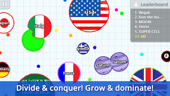 Mängi kaasahaaravat strateegiamängu teiste mängijatega kogu maailmast. Kasva ja arene, neelates endast väiksemaid rakke, et saada lahinguvälja suurimaks ja domineerivaimaks rakuks. Pane proovile oma oskused ja strateegia selles põnevas online-väljakutses.