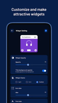 Too see kontroll otse oma avakuvale võimsate ja kohandatavate vidinate abil. Bluetooth Device Manager võimaldab sul muuta vidinate välimust alates tausta ja vidina enda läbipaistvusest kuni heleda, tumeda või täielikult kohandatud teemani. Muuda ikoonide suurust, vali endale sobiv fondistiil ja hoia silma peal seadmete aku tasemel otse vidinalt. Kujunda vidinad vastavalt oma esteetilistele eelistustele ja õpi hõlpsasti, kuidas neid oma avakuvale lisada, et sinu olulised Bluetooth-ühendused oleksid alati mugavalt käepärast.