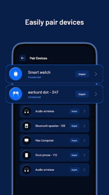 Lihtne rakendus, mis muudab Bluetooth-seadmete haldamise ja sidumise vidinate kaudu eriti mugavaks. Kohanda oma vidinaid erinevate ikoonide ja tekstiga, et juhtida seadmeid kiirelt ja lihtsalt.