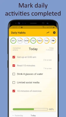 "Daily actions tracker" on sinu abimees igapäevaste tegevuste jälgimisel ja heade harjumuste kujundamisel. Loo kohandatud tegevuste nimekirju, märgi edusamme ning aita endal püsida järjepidevana. Jälgi oma igapäevaseid toiminguid ja vaata, kuidas need muutuvad kindlateks harjumusteks.