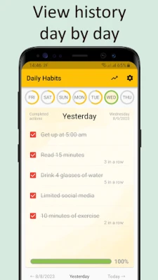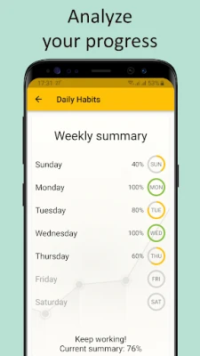 See rakendus annab teile vabaduse valida: kas kasutate meie ettevalmistatud soovitatavate harjumuste loendit või loote täielikult isikupärastatud nimekirja. Paindlikud ajastamise valikud võimaldavad teil määrata, millistel nädalapäevadel iga tegevus aset peaks leidma, muutes rutiini kohandamise teie elustiiliga imelihtsaks. Jälgige samal ajal mitut erinevat eesmärkide nimekirja ja süvenege oma varasematesse saavutustesse, et näha läbitud teekonda. Lisaks pakub see tööriist motiveerivat süsteemi, mis aitab teil oma harjumuste reitingut tõsta ja teenida preemiaid järjepidevuse eest, hoides motivatsiooni kõrgel. Pidage meeles, et uuringud viitavad harjumuse kujunemiseks keskmiselt 66 järjepideva päeva vajadusele – see rakendus on teie usaldusväärne partner sellel teekonnal.