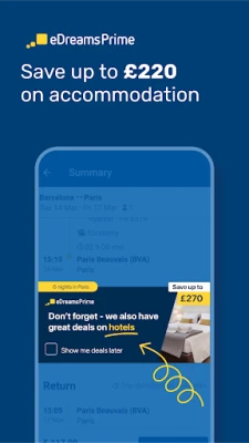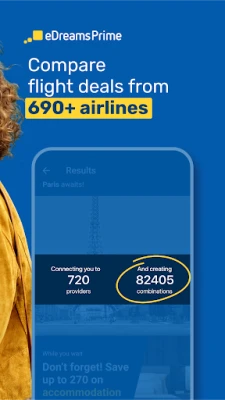 eDreams hoolitseb iga detaili eest, et sinu reisikogemus oleks sujuv ja muretu. Meie rakendus pakub mugavust pardakaartide otse sinu seadmesse hankimisel ning teostab automaatse registreerimise kohe, kui see lennufirmas avaneb. Jälgi iga lennu olekut reaalajas, saad vajadusel konto loomisel lennuteavitused väravate, pagasilintide, hilinemiste või tühistamiste kohta otse oma telefoni. Ka ilma internetiühenduseta on sinu reisiplaanid, broneeringuviited ja pagasiteave kergesti kättesaadavad ja lisaks saad avastada sihtkohta meie tasuta reisijuhtide abil.