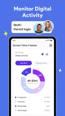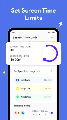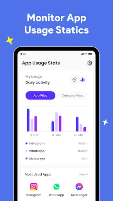 Rakendus pakub põhjalikke ülevaateid teie rakenduste kasutamise kohta, esitades detailseid igapäevaseid ja iganädalaseid aruandeid. Näete täpselt, kui palju aega kulutate igale üksikule rakendusele, mis on esimene samm teadlikkuse poole. Kuid see pole pelgalt jälgija; Ekraaniaja juhtimine – rakenduste kasutamise jälgija annab teile võimu luua isikupäraseid ajakavasid ja seada paindlikke piiranguid. Blokeerige rakendused automaatselt pärast kindlat kasutusperioodi või lubage neid ainult valitud kellaaegadel, tagades, et oluline jääb tehtud ja meelelahutus leiab oma koha.
