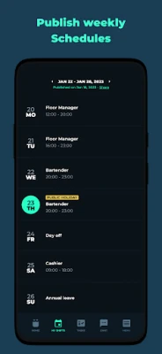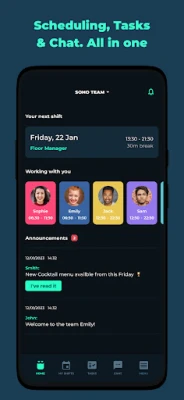Ka teie meeskond hindab Blendi kasutusmugavust. Töötajad saavad oma töögraafiku mobiilseadmesse kohe pärast avaldamist, koos meeldetuletustega eelseisvate vahetuste kohta. Aeg maha taotluste esitamine on lihtsam kui kunagi varem ja tasakaalustatud ajakavad suurendavad meeskonna läbipaistvust. Suhelge kolleegidega vestlusfunktsiooni kaudu. Lisaks töögraafikutele pakub Blend nutikat ülesannete haldust: looge korduvaid või ühekordseid ülesandeid, mis seotakse vahetustega ja määratakse automaatselt töötajatele vastavalt avaldatud graafikule. Uus funktsioon, töötajate sisse- ja väljalogimine, annab neile meeldetuletusi vahetuse alguses ja lõpus ning võimaldab aega arvestada otse nutitelefonist. Juhid saavad seejärel kinnitada tunnilehti ja eksportida aruandeid.