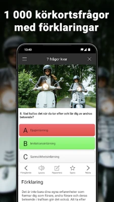 Sukeldu põhjalikku teooriakoolitusse meie ainulaadse ja pedagoogilise mängu "Mopedresan" abil. See interaktiivne seiklus juhatab sind läbi lühikeste, ent sisukate teooriatundide, proovile panevate liiklusmärkide tasemete ja mitmekesiste testide. Iga õnnestumisega kogud sa tähti ja avad uusi medaleid, liikudes samm-sammult lähemale teooriaeksami edukale läbimisele. Meie ulatuslik, üle 950 küsimusest koosnev andmebaas pakub mopeedilubade küsimusi, mis on hämmastavalt sarnased päris eksamil esitatavatele. Lisaks kaasnevad iga küsimusega selgitused, mis aitavad sul süvitsi mõista ka kõige keerulisemaid liiklussituatsioone ja reegleid.