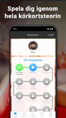 iKörkort Moped pakub viit erinevat tüüpi testi, et tagada sinu igakülgne ettevalmistus: nutikad harjutustestid, realistlikud teooriatestid, teemapõhised testid, liiklusmärkide testid ja isikupärastatud testid, kus saad ise kõiki seadeid kohandada. Rakendus sisaldab ka otsitavat ja kergesti loetavat mopeedilubade õpikut, mis võtab kokku kogu vajaliku teooria ning võimaldab sul pärast iga peatükki oma teadmisi proovile panna. Sinu edusammud on alati silme ees tänu detailsele statistikale, mis jälgib sinu arengut enam kui 60 erinevas teemas. Samuti on olemas kontrollnimekiri, mis juhendab sind igal sammul mopeediloa saamiseni, ning otsitav teatmeteos kõigi Rootsi liiklusmärkidega. Oluline on märkida, et iKörkort Moped on pidevalt ajakohastatud, tagades, et kogu sisu, sealhulgas seadused ja liiklusreeglid, vastaks viimastele nõuetele ja on valmis sind toetama ka 2026. aasta eksamitel.