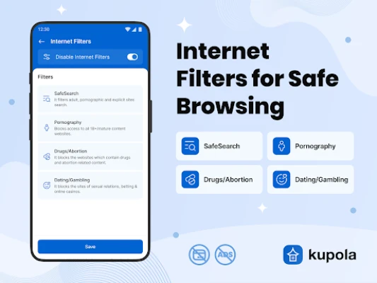 Kupola Parental Control pakub peredele lihtsaid vahendeid laste ekraaniaja haldamiseks, rakenduste ja veebisaitide blokeerimiseks ning interneti filtreerimiseks. Kasuta GPS-jälgijat, geopiirdeid ja SOS-nuppu ühenduses püsimiseks. Loo ajakavasid ja edenda turvalisi digitaalharjumusi.