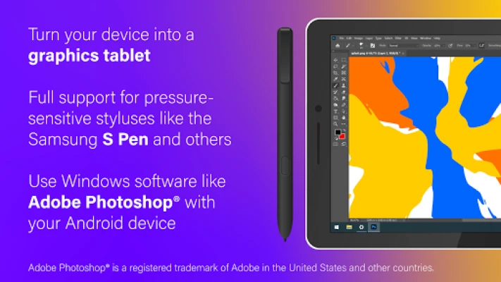 Kuid SuperDisplay on enamat kui lihtsalt teine monitor – see on ka võimas graafikatahvli tööriist. Muuda oma Android-seade professionaalseks digitaalseks lõuendiks, mis toetab täielikult rõhutundlikke pliiatseid, nagu näiteks Samsung S Pen. See võimaldab digitaalsetel kunstnikel, disaineritel ja teistel loomeinimestel nautida enneolematut täpsust ja kontrolli oma loomingulises protsessis, kasutades rakendusi nagu Adobe Photoshop®. Avasta uued piirid oma kunsti loomisel ja disainimisel, muutes sinu seadme mitmekülgseks ja ülitundlikuks partneriks kõigi sinu loominguliste ettevõtmiste juures.