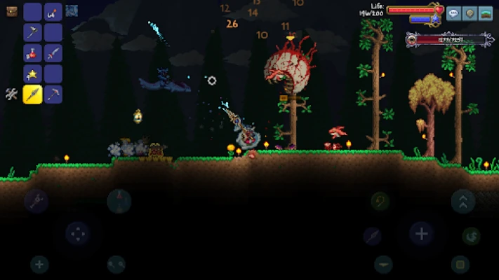 Terraria on spetsiaalselt mobiilseadmete jaoks uuesti loodud, pakkudes enneolematut mängukogemust. Nautige täielikult kohandatavaid juhtnuppe ja kasutajaliidest, mis tagavad sujuva ja intuitiivse mängimise. Lisaks toetab rakendus Bluetooth-ühendusega mängupulte, mille nupud on täielikult ümber programmeeritavad. Ükskõik, kas eelistate väikest, keskmist või suurt maailma, pakub Terraria nüüd samu maailma suuruseid nagu PC versioon, sisaldades ka juhusliku maailma nimegeneraatori ja võimaluse kasutada erinevaid maailmaseemneid, sealhulgas peidetud "lihavõttemuna" maailmu. Avastage ja ehitage koos kuni seitsme sõbraga kohaliku Wi-Fi või võrgu kaudu, kasutades seadmetevahelisi ühendusi või mobiilse Terraria PC serverit, mis on tasuta saadaval Terraria.org veebilehel.